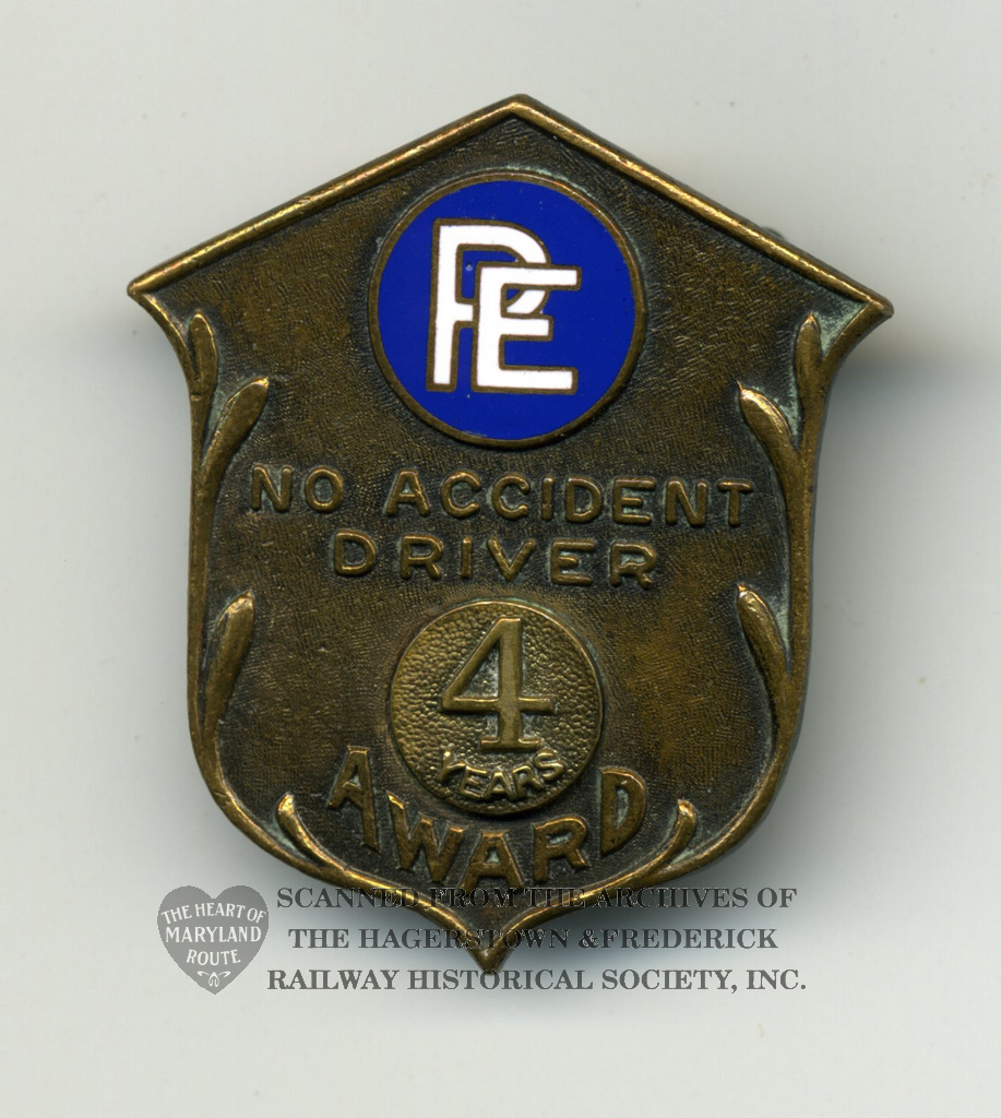 Potomac Edison operated the Hagerstown & Frederick Railway Company and City bus operations in the cities of Frederick and Hagerstown. If this badge were a Blue Ridge Lines Bus Company driver it would have likely been presented with Blue Ridge Line logo as opposed to the Potomac Edison Logo.