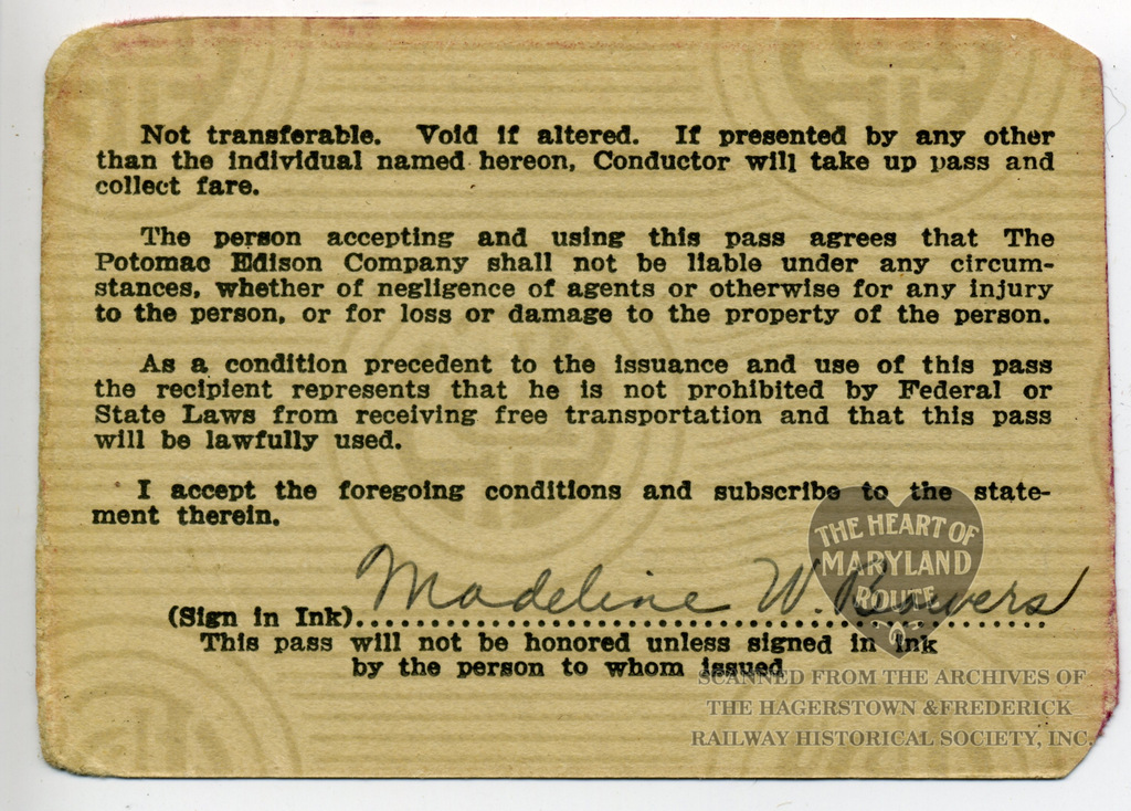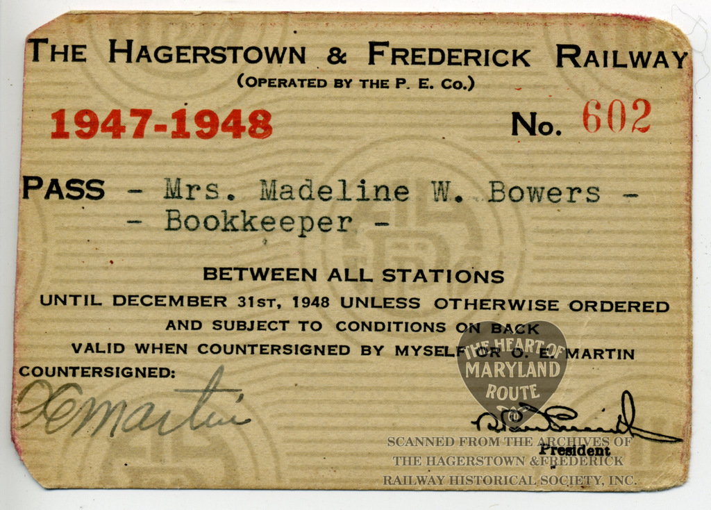 This pass was used by company bookkeeper Madeline Bowers in the accounting department to travel anywhere on the system during the two years the pass was issued for.