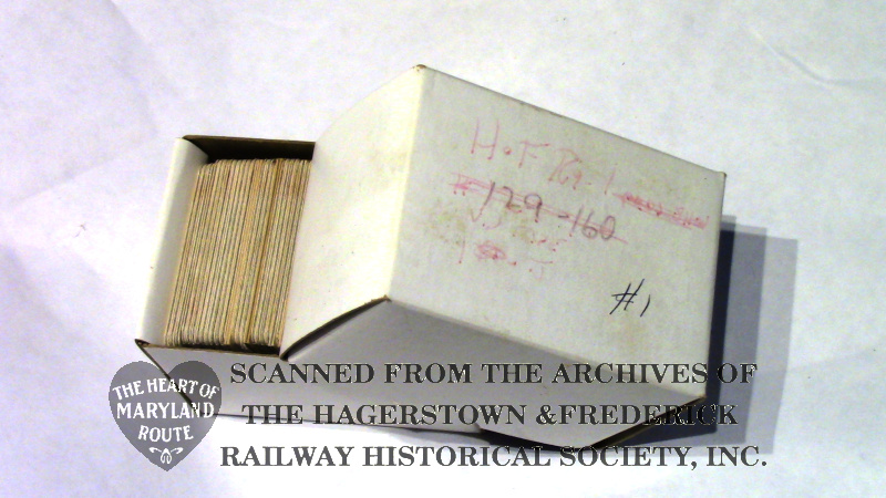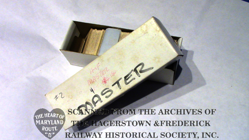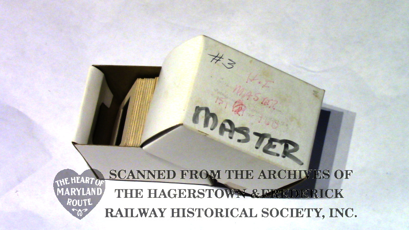 This collection of slides was reproduced by Mr. James in the 1980s and copies could be ordered by railfan clubs and individuals to share along with his accompanying narration. With some slide projectors the cassette of narration would also advance the slides automatically. This ultimately became the half hour “The H&F: Trolleys Through The Heart Of Maryland” documentary aired on Maryland Public Television and then refined and released on VHS by Mr. James from 1994 until his passing in 1997.