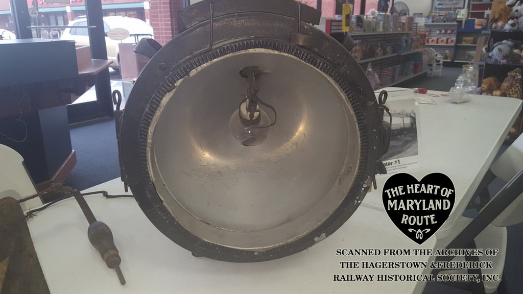 This headlamp came to the Society captioned as having been assigned to Freight Motor #1, the largest H&F trolley. In reality research has shown that these headlamps were often interchanged between cars and similar lamps have been seen on the passenger cars as well.