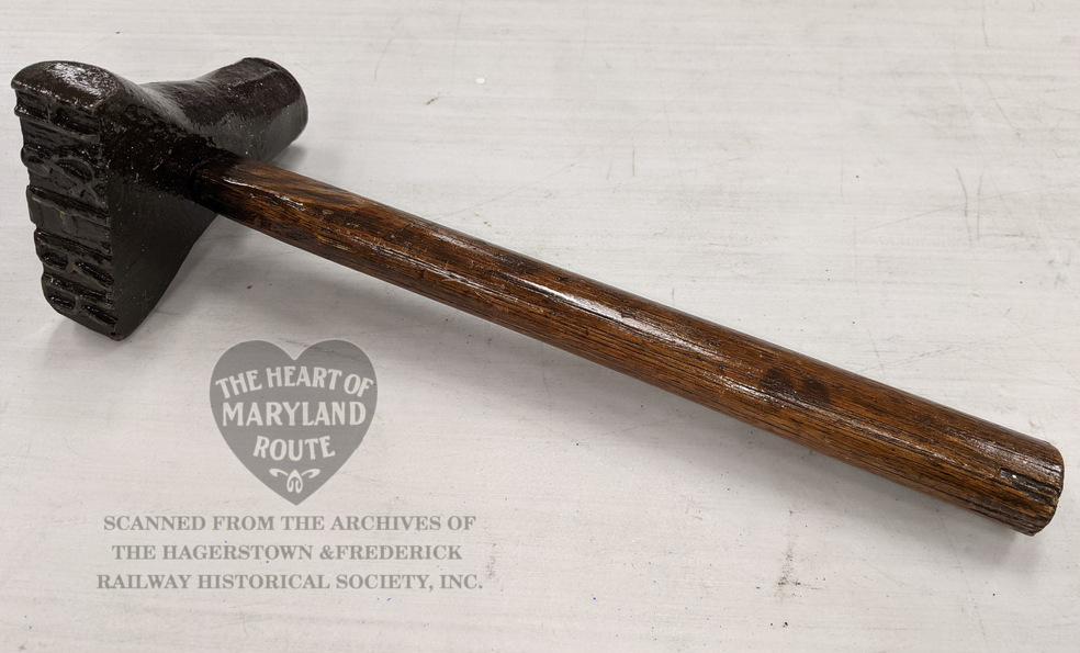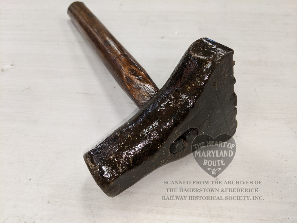 This unique hammer like tool was used to imprint the H&F initials into objects, most likely wooden material. It is believed that this may have marked railroad ties and power poles with the company initials. While marking hammers of this type were often swung with their own weight leaving the imprint this particular hammer appears to have also been struck on its reverse side by another hammer at least on occasion.