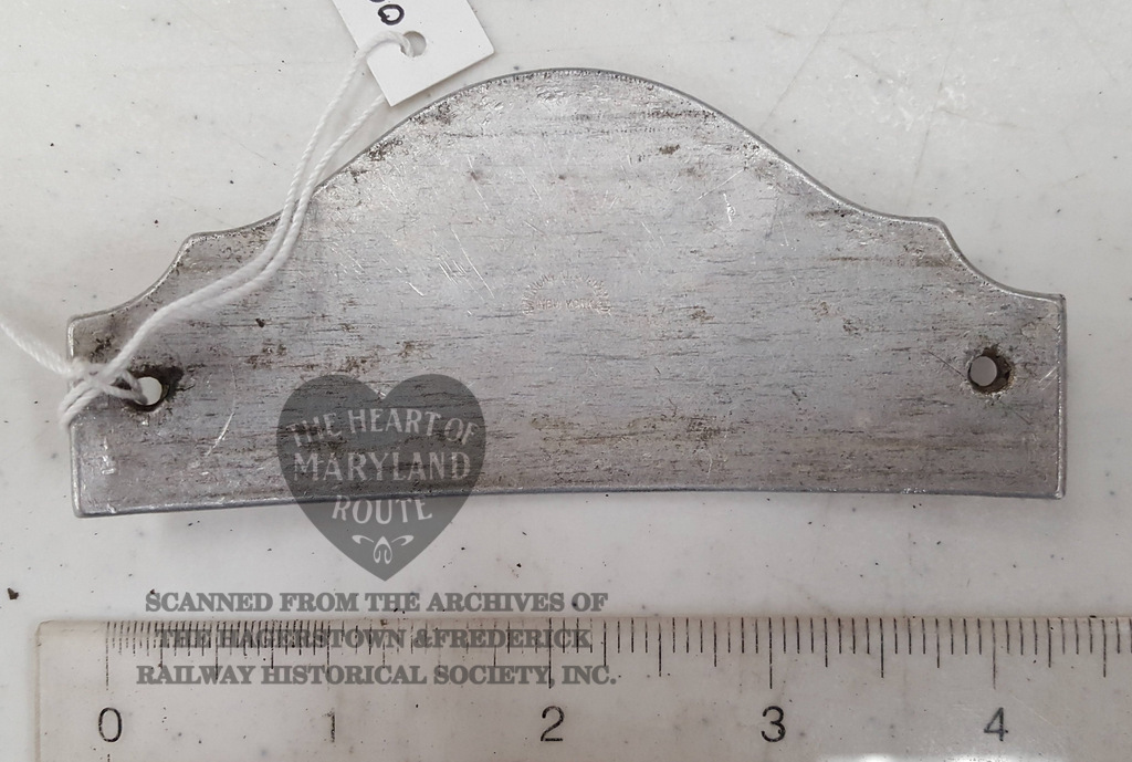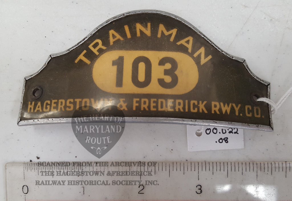 This badge is of the early H&F style with a profile identical to badges which had been used by the Hagerstown Railway Company.