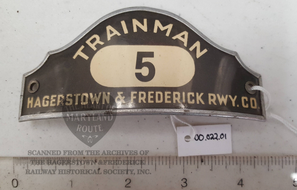This badge is of the early H&F style with a profile identical to badges which had been used by the Hagerstown Railway Company.
